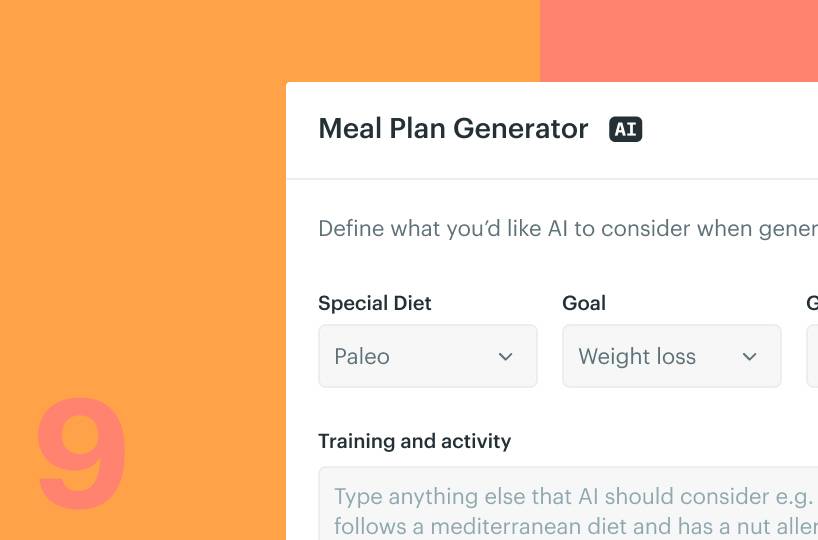 The AI algorithms analyze your clients' weight, goals, activity, training, food preferences, and restrictions to generate meal plan examples tailored to their needs. Stand out by offering a highly personalized experience.