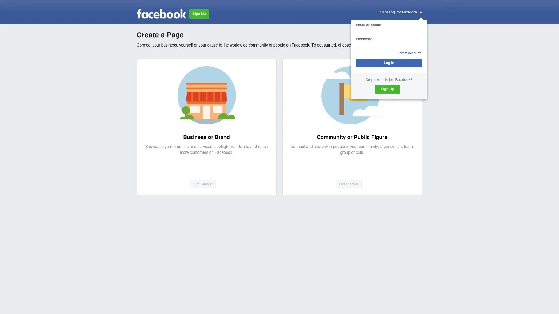 Visit Facebook's page creation tool to start. Select "Business or Brand" as your page type.
